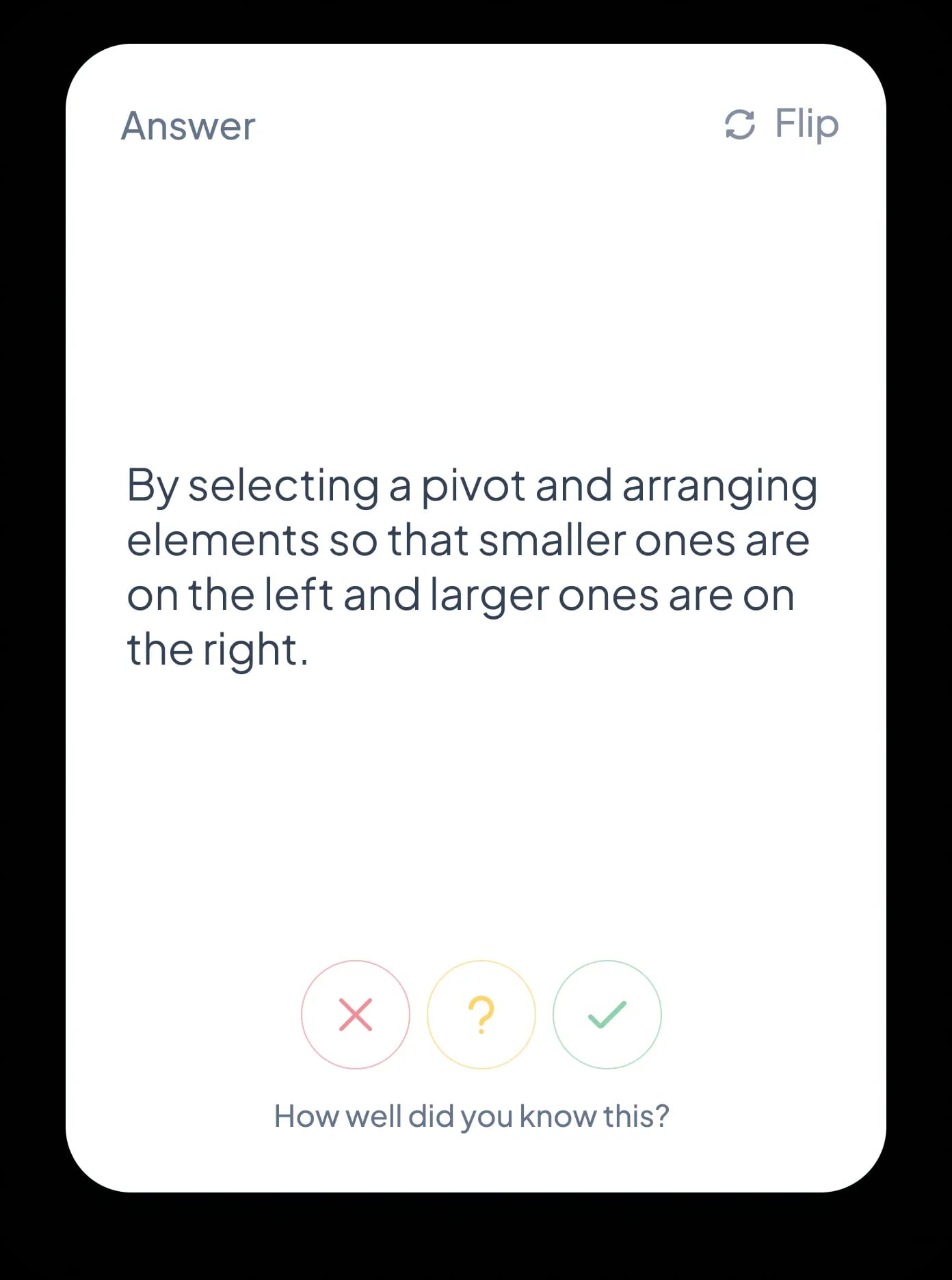 Flashcards follow a spaced repetition system that prioritises weaker memories and reduces unnecessary review.