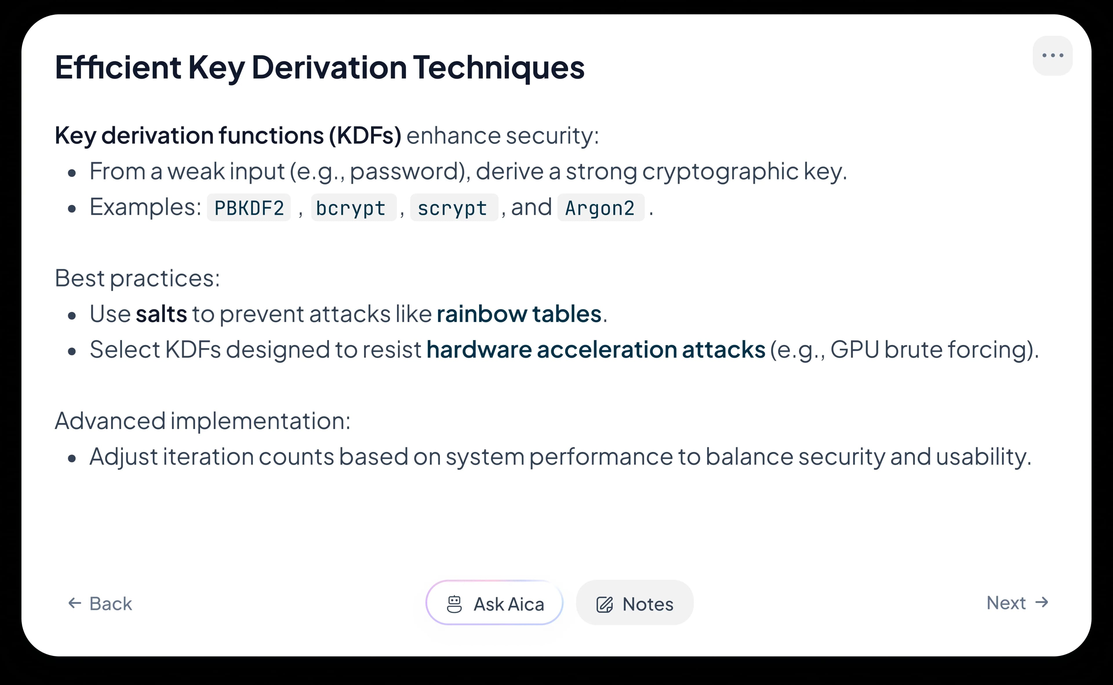 You start with an idea, not a plan. Aicademy handles the breakdown into something you can work through, so you do not have to decide how to structure a topic before you even begin.